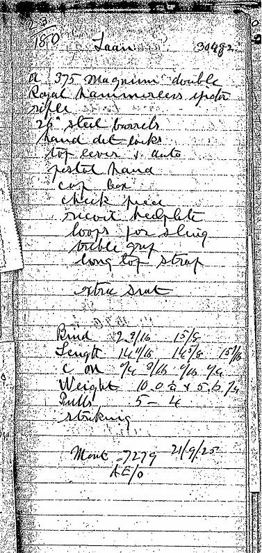 This is a fabulous Holland and Holland Royal Hammerless Ejector built in 1925, caliber .375 Flanged Magnum. It has all the features of a classic H&H magnum rifle: bolstered action; long top tang extending over the top of the comb; hidden third fastener; side clips; bushed firing pins; articulated front trigger; and ejectors.