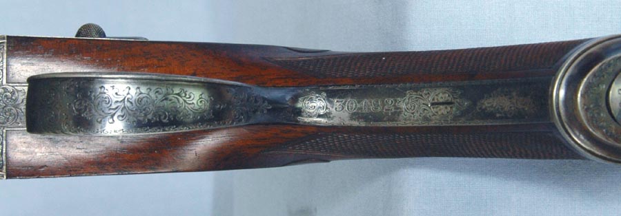 The top lever and forend sport the number "2". Holland & Holland says this rifle was not paired with another. They further state that it was not uncommon for customers to ask for their non-paired guns to be numbered.