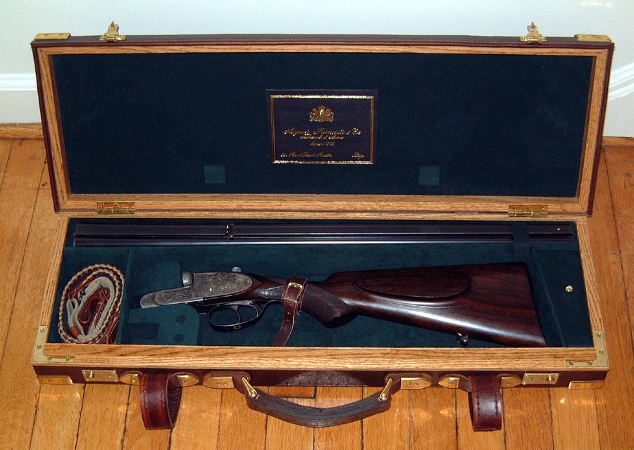 Cased in contemporary oak and leather trunk case with maker’s label. Weight = 7.37 lbs. A truly outstanding rifle in a great caliber. It has been in my personal collection since 1998.