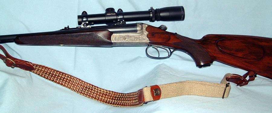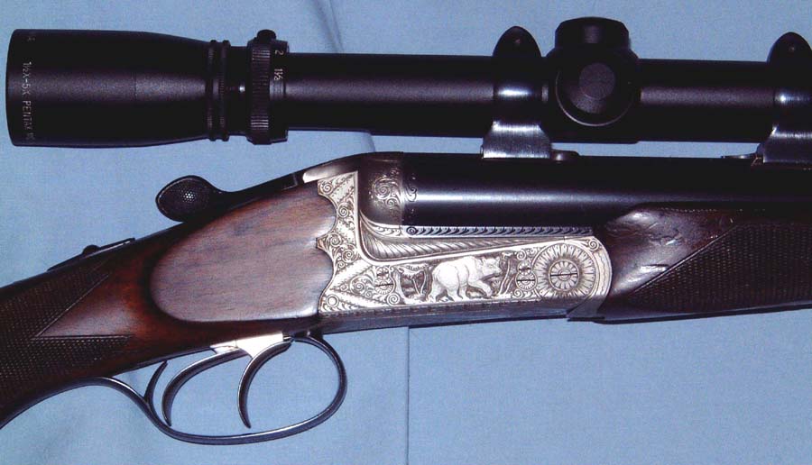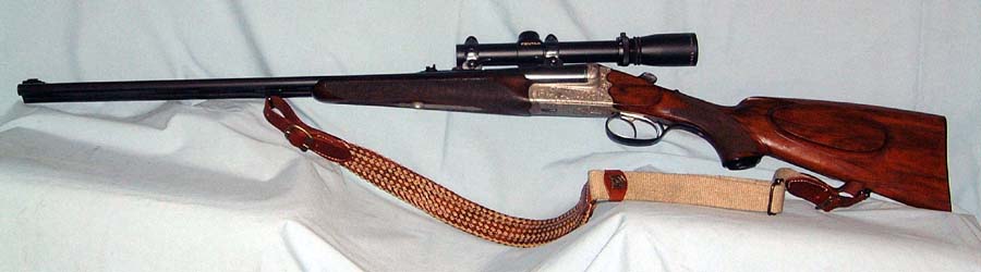 This rifle remains in excellent condition. Paul Jaeger, Inc. imported it in 1968. I would assume that firm (probably Dietrich Apel) installed the scope. It has been hunted and shows some marks from use. There is a slight dark spot in the left barrel an inch or two ahead of the chamber, which affects nothing. The rifle is quite accurate and regulated for 220 grain RN bullets. This is a really handy gun in a most useful caliber made by one of Ferlach’s best makers. I have personally shot and hunted with this rifle for a number of years.