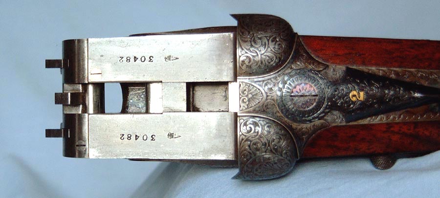 The top lever and forend sport the number "2". Holland & Holland says this rifle was not paired with another. They further state that it was not uncommon for customers to ask for their non-paired guns to be numbered.