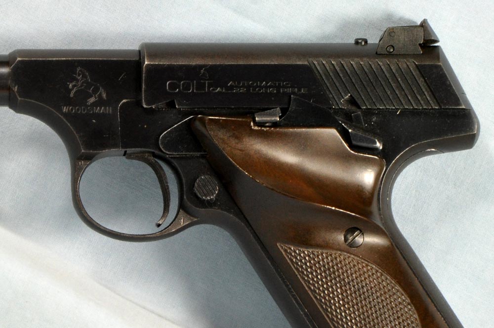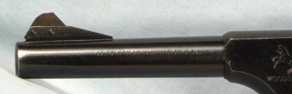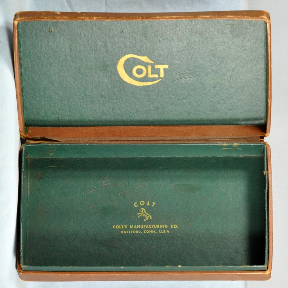 This is an extremely nice Second Series Sport Model, made in 1951. It remains in excellent original condition with perfect mechanicals and showing very little use. It still has its Colt box, though the box shows some use. The condition of this pistol is wonderful. It has only the slightest bit of holster wear on either side of the muzzle and very little sharp edge blue wear. On this point, my photos don't really do justice. Holding the pistol in hand, I see only very slight finish wear at either side of the muzzle. My photos have glare that confuses this point. Finish on the front and rear grip straps shows almost no wear. This pistol looks almost new in the hand. It has a perfect bore. The action is smooth as silk. I have had it to the range, and it is a joy to shoot. This is an outstanding Woodsman that shows very little use. It is a great shooter and certainly is ready for several more generations of service. It's rare to find one in this kind of condition. It actually looks better in hand than in these photographs.