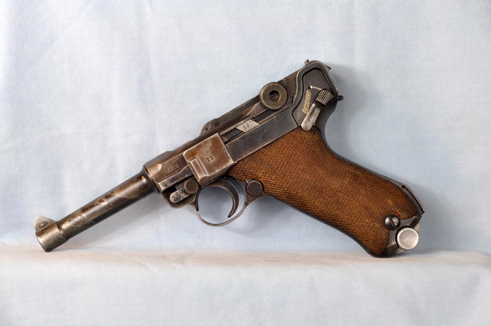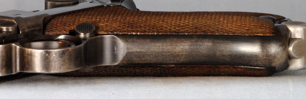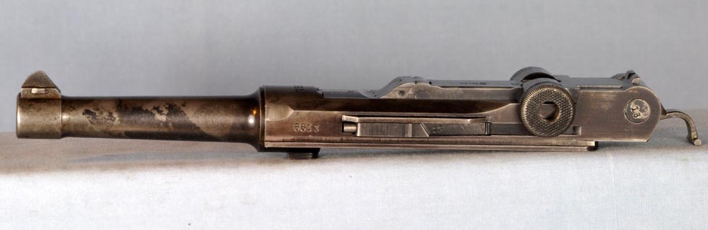 This Luger is all matching except for the magazine, which is correct but not numbered to the gun. It's in excellent mechanical condition and has a bright, shiny bore with no darkness and very little pitting. What this Luger lacks in exterior finish, it makes up for in great mechanics and character. It's crisp and clean with absolutely no rust, corrosion, or pitting. This is a great shooting Luger, but it's better than just a shooter. It would be a good first Luger. My photos tell the rest.