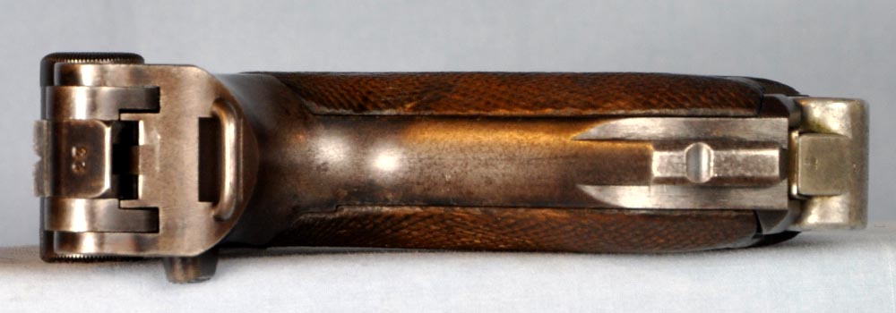 This Luger is all matching except for the magazine, which is correct but not numbered to the gun. It's in excellent mechanical condition and has a bright, shiny bore with no darkness or pitting. It's exterior finish shows its age, but there's no abuse. My photos will tell the rest.