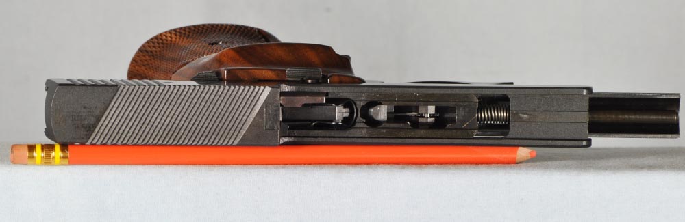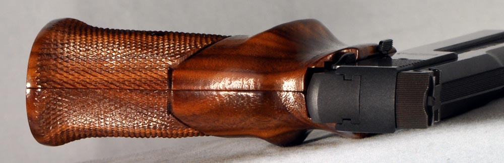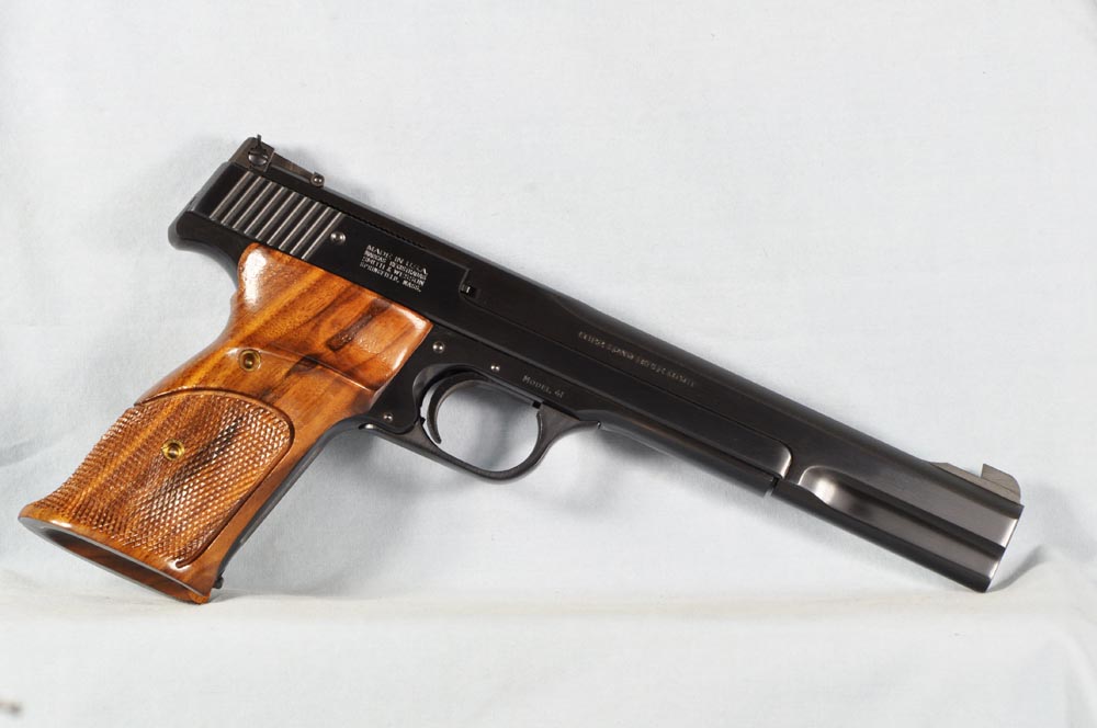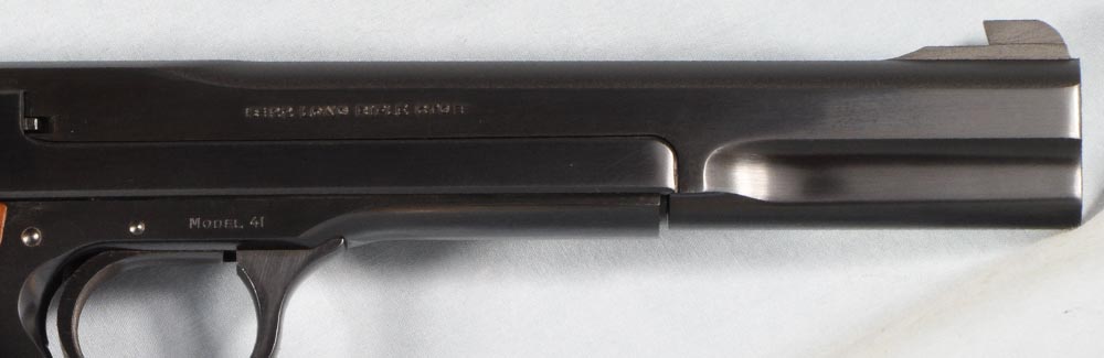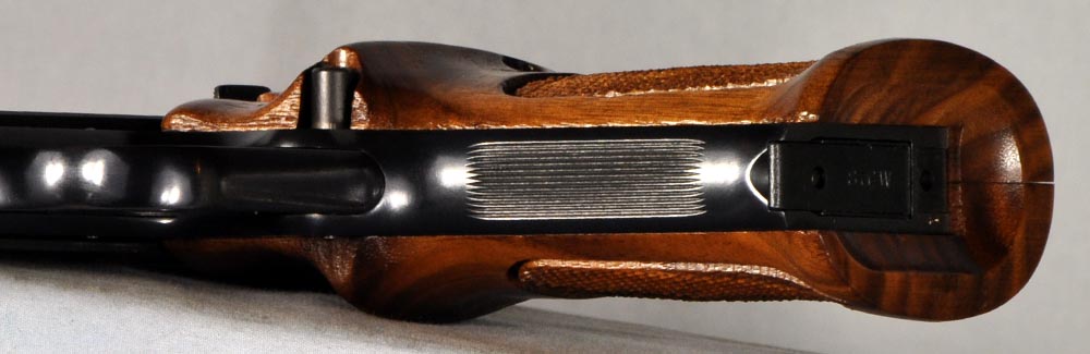 There's really nothing to explain about this pistol. It's just plain mint. It presents as new. No box or papers, however. The bore is perfect. The pistol functions flawlessly. The walnut grips are unblemished, and they are gorgeous, with beautiful high contrast streaking of the grain like none I have seen. This pistol is clean, well kept, and ready to go. It would be hard to find a nicer M41. These are fine, fine pistols.